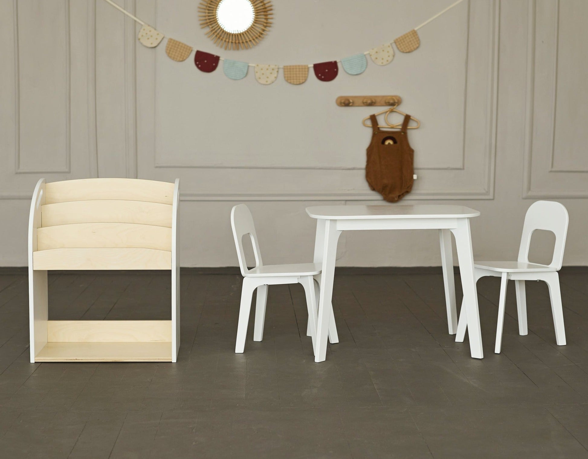Ensemble bibliothèque, table enfant et deux chaises - 7 couleurs