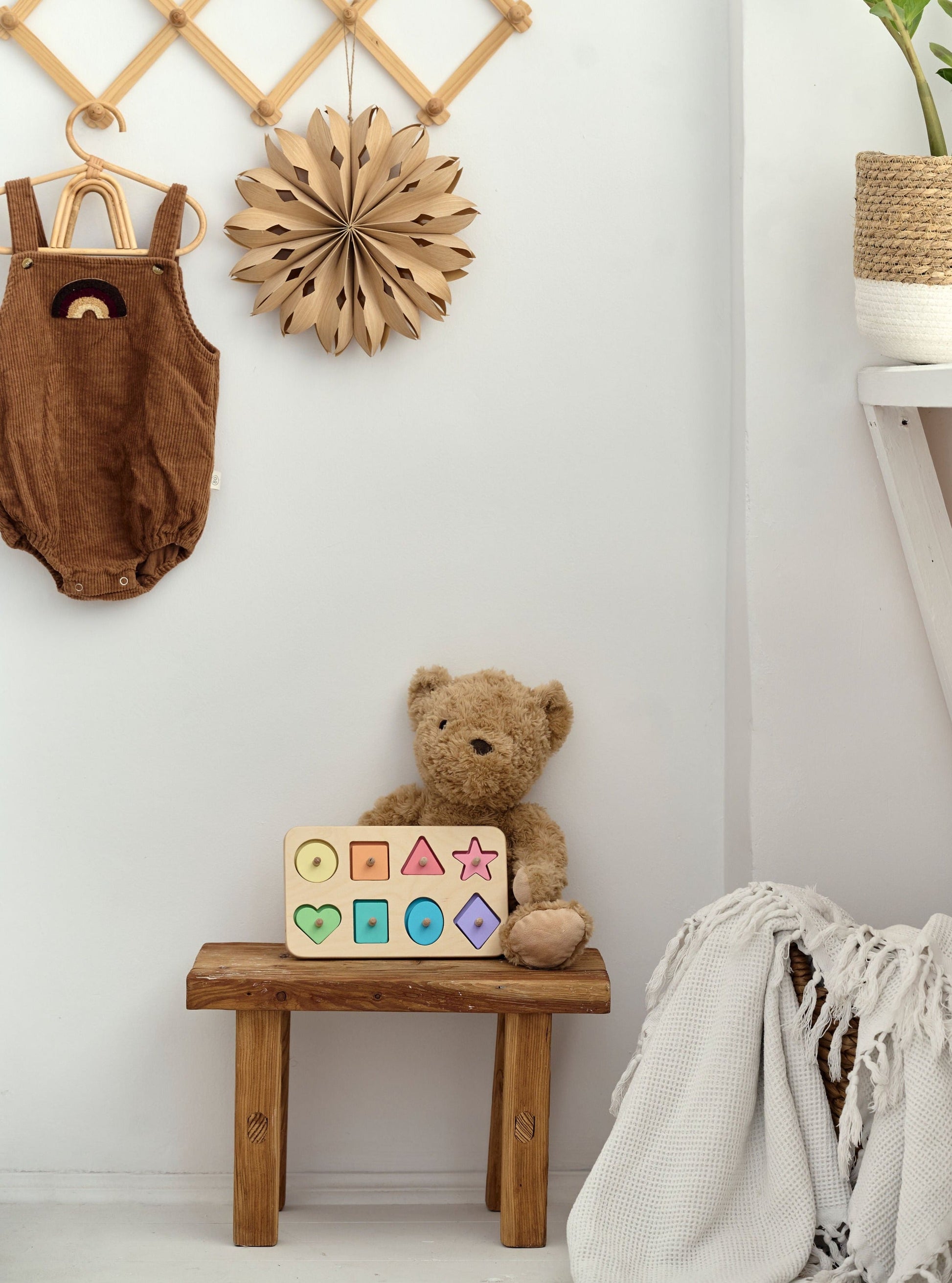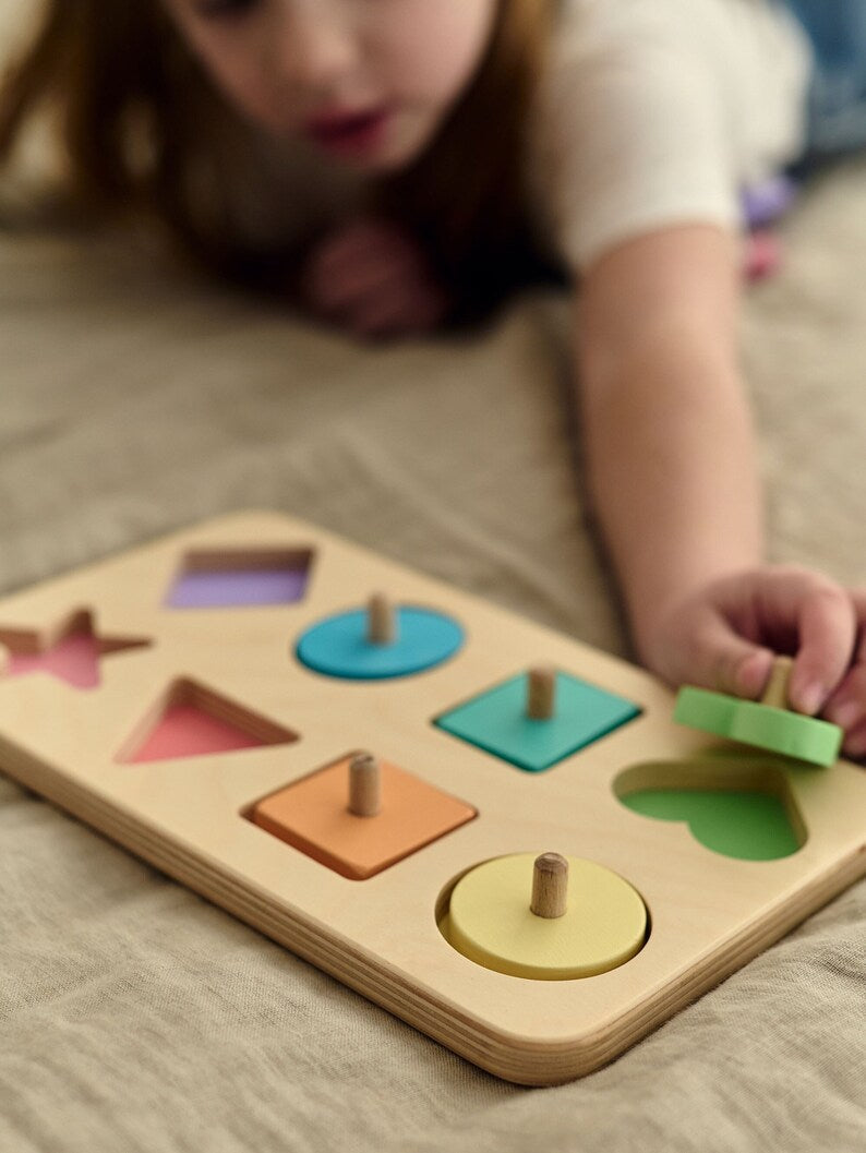 Achetez un puzzle en bois aux formes géométriques (couleurs arc-en-ciel)