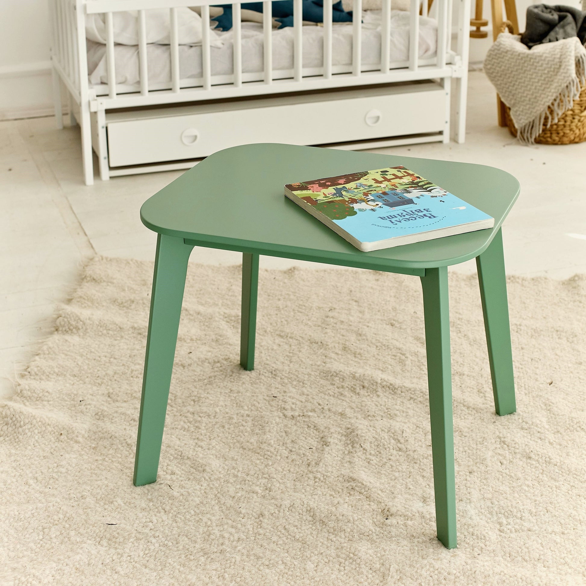 - La table pour tout-petits est entièrement fabriquée en contreplaqué de bouleau, recouvert de peintures et de vernis à base d'eau.