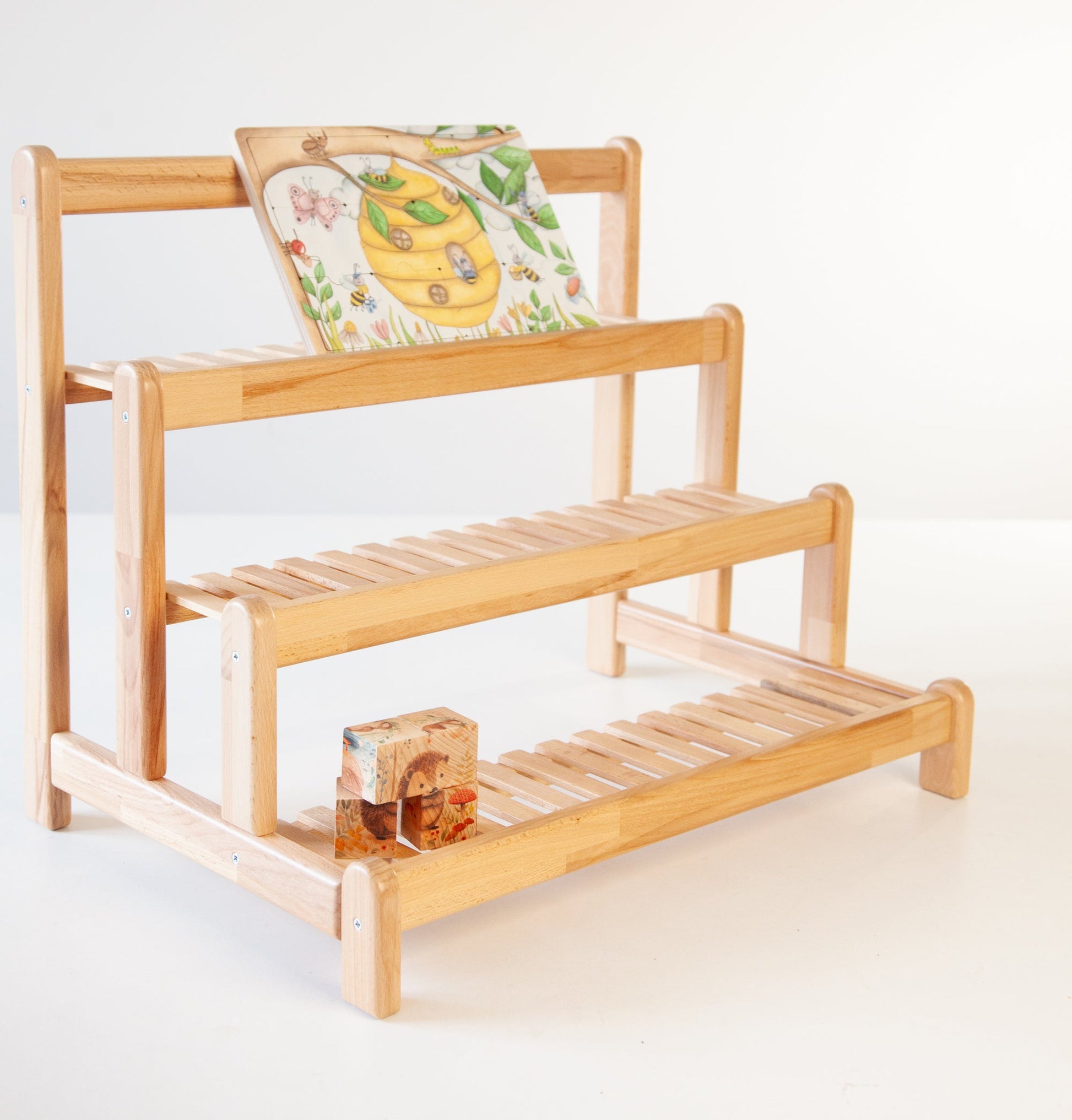 Offrez à votre enfant un espace douillet et organisé pour ranger ses livres et jouets préférés grâce à cette étagère de sol en bois, au design soigné. Idéale pour les petits espaces, elle permet de garder les objets essentiels à portée de main. Fabriquée en hêtre naturel de haute qualité, cette étagère compacte allie robustesse et esthétique classique et écologique, s'intégrant parfaitement dans une chambre d'enfant, une chambre à coucher ou une salle de jeux.