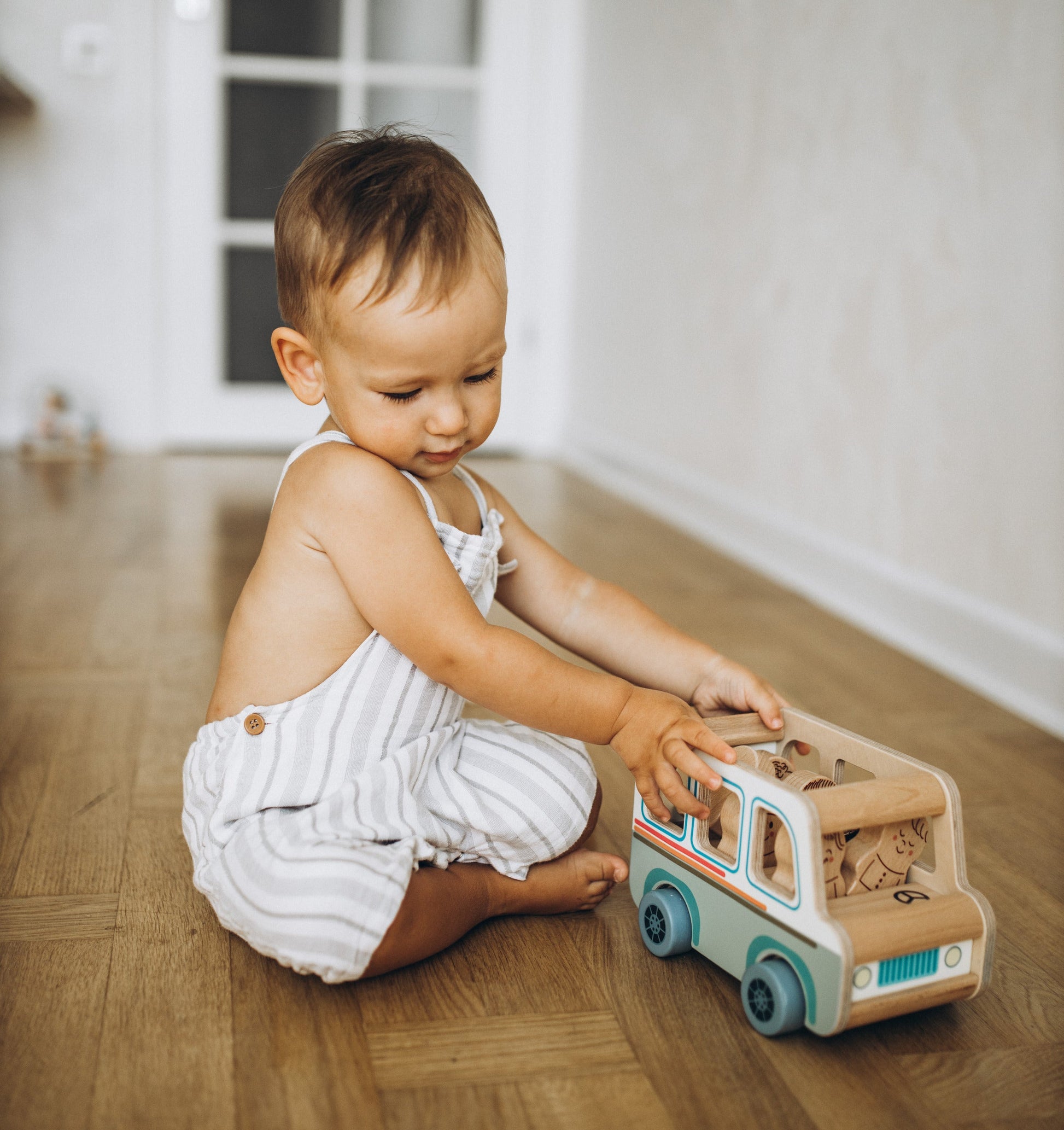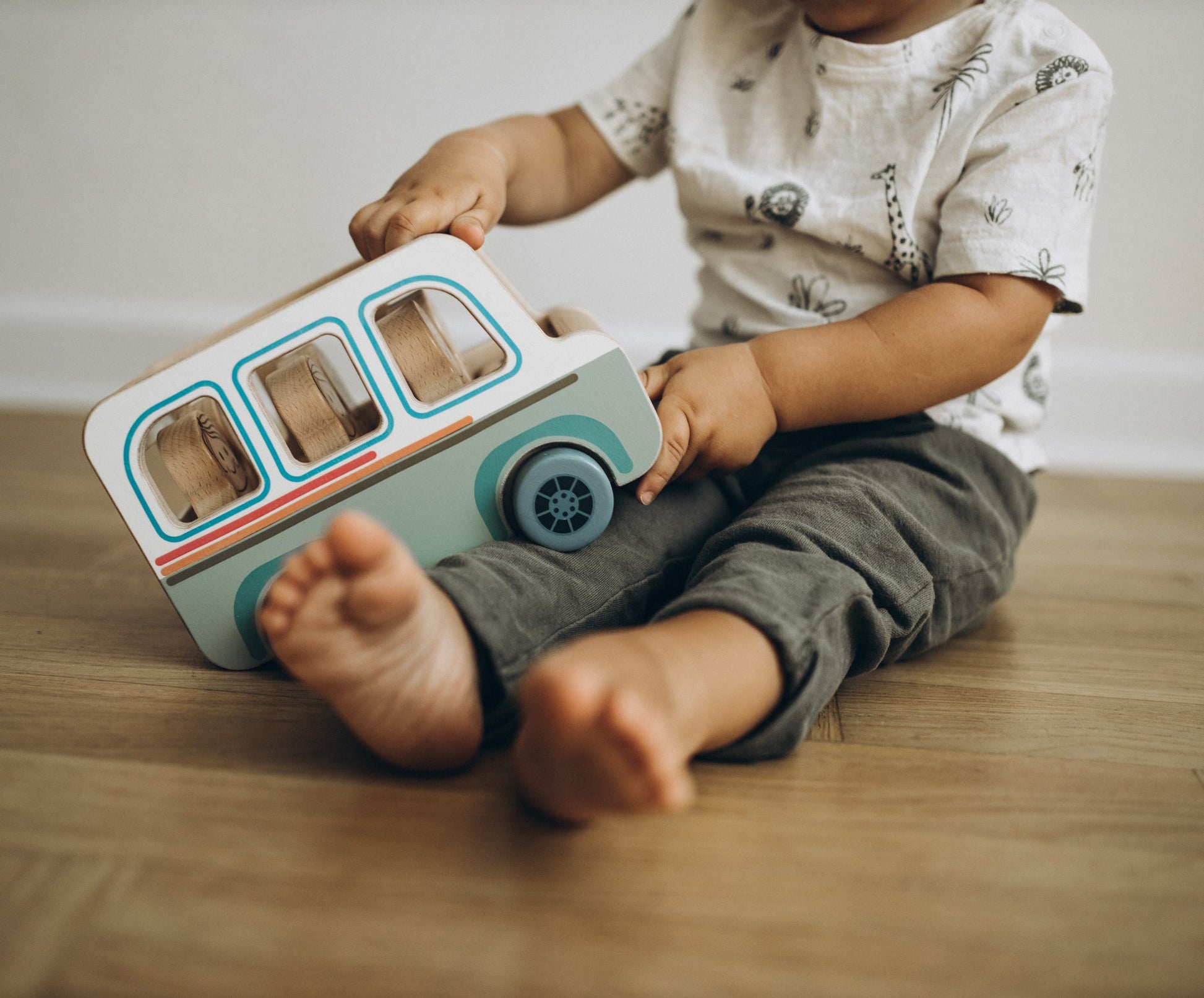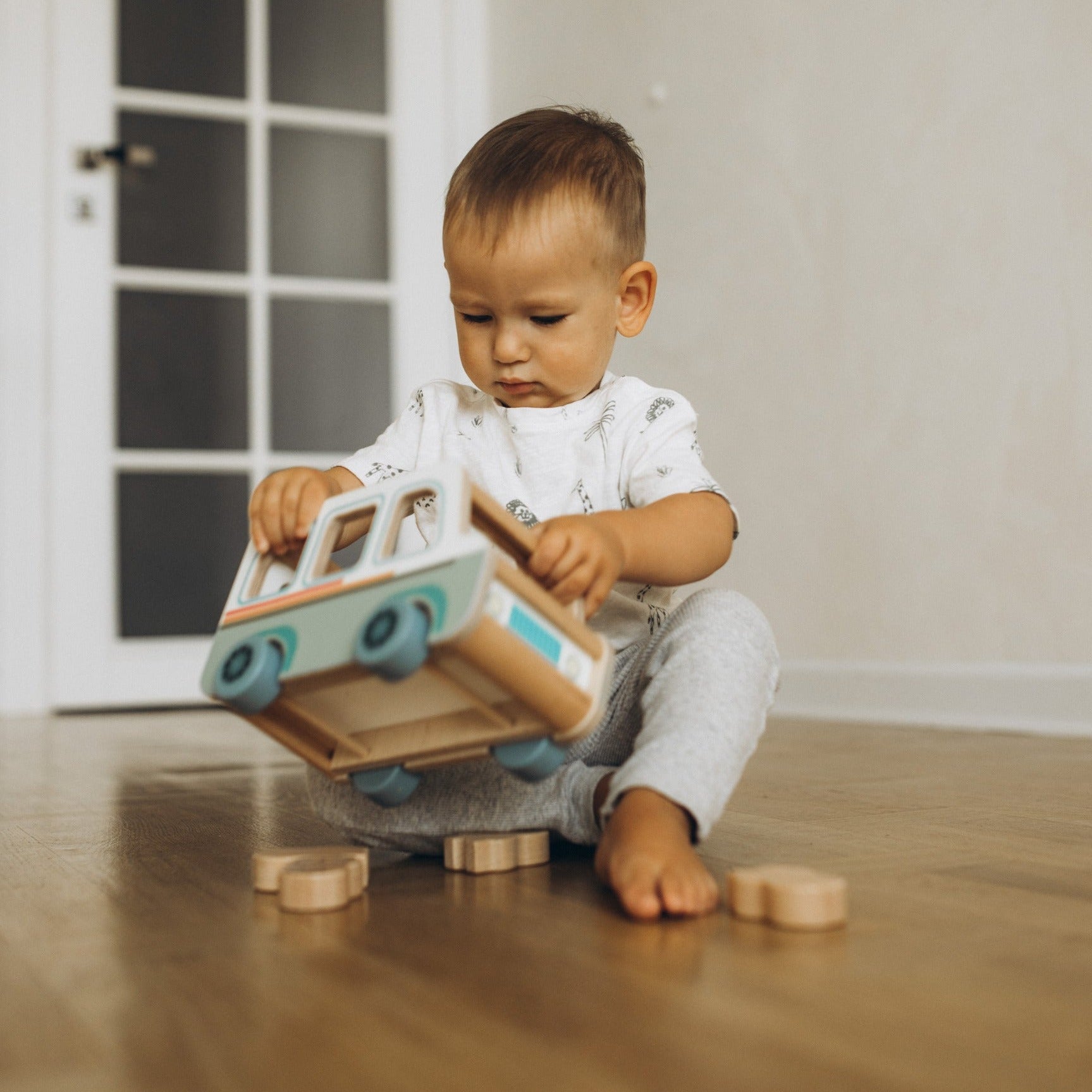 Ce jouet a été conçu selon la méthode Maria Montessori. Jouer avec le bus permet de développer la coordination œil-main, la motricité fine et les muscles des bras. De plus, il peut servir d'objet de décoration dans une chambre d'enfant. Il s'intègre parfaitement sur une étagère, aux côtés de livres ou d'autres jouets en bois.