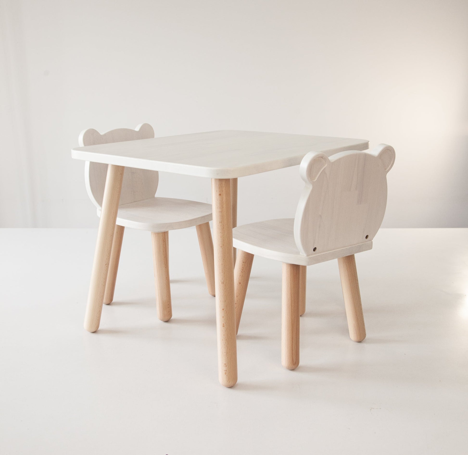 Ensemble table et chaises ours en bois pour enfants - Bois de hêtre